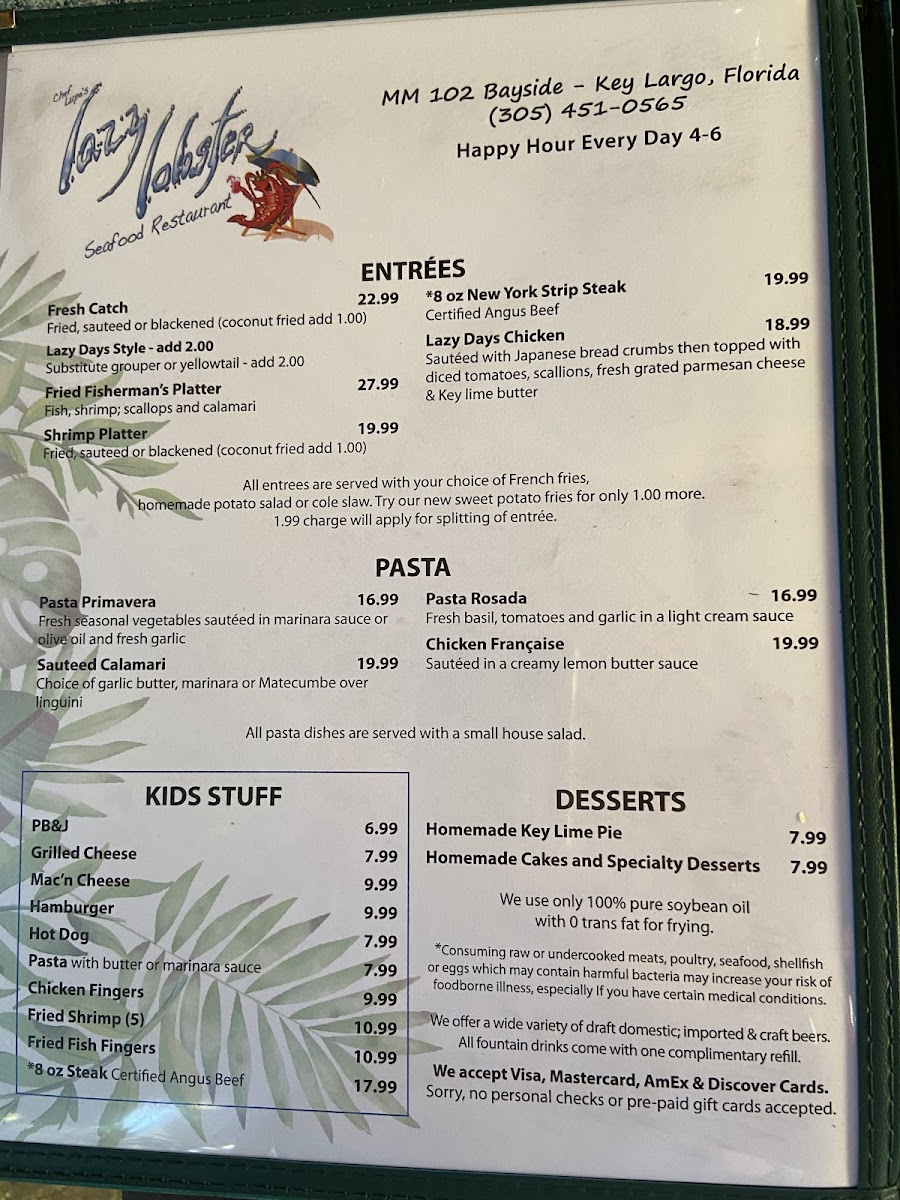 Welcome to Lazy Lobster Seafood Restaurant, a culinary gem nestled in Key Largo, Florida. Renowned for its fresh and delicious seafood, Lazy Lobster offers a diverse menu that caters to all palates, including numerous gluten-free options. Diners rave about their remarkable seafood bisque, praised as the best they've ever tasted, along with a must-try gluten-free pasta and exquisite key lime pie.